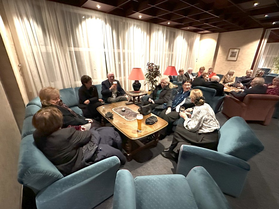 Da alle hadde fått det de trengte av ribbe, pinnekjøtt osv, gikk turen over til Fritidsmessas salonger. Messa er under ombygging og fornyelse dermed var det litt kaldt i lokalene. Alle hadde spist seg varme, så dette gikk bra, selv om enkelte måtte beholde ytterfrakken på.