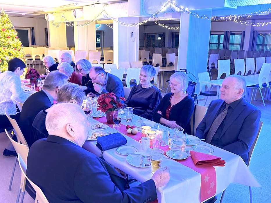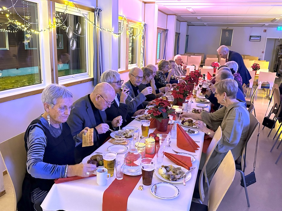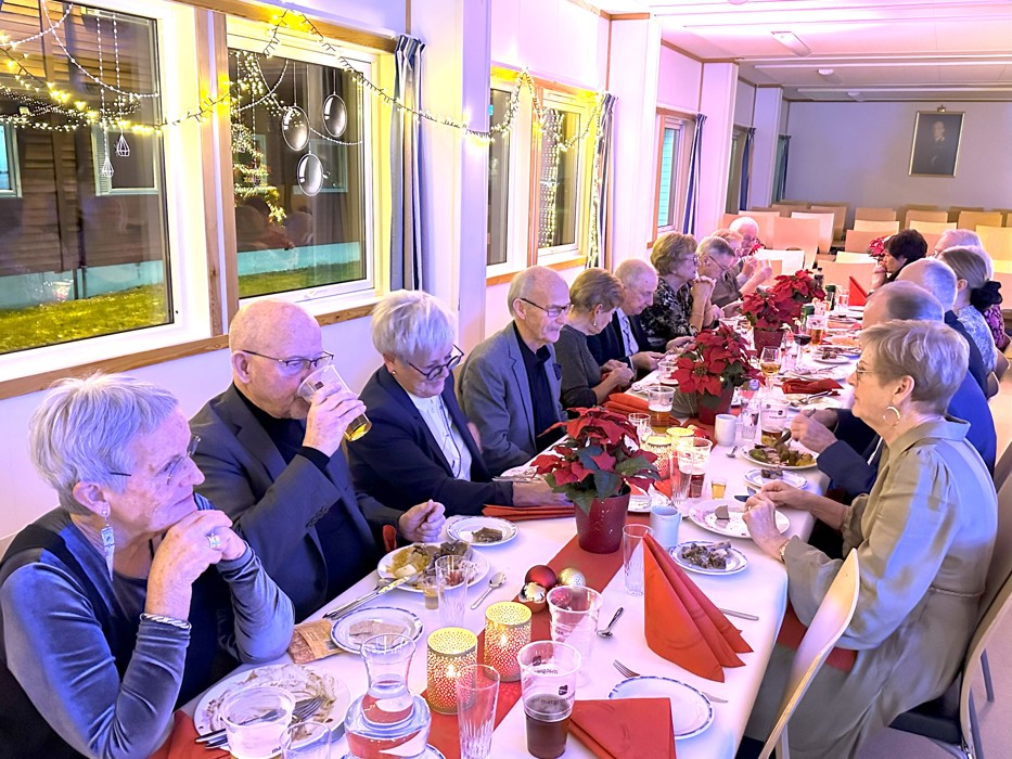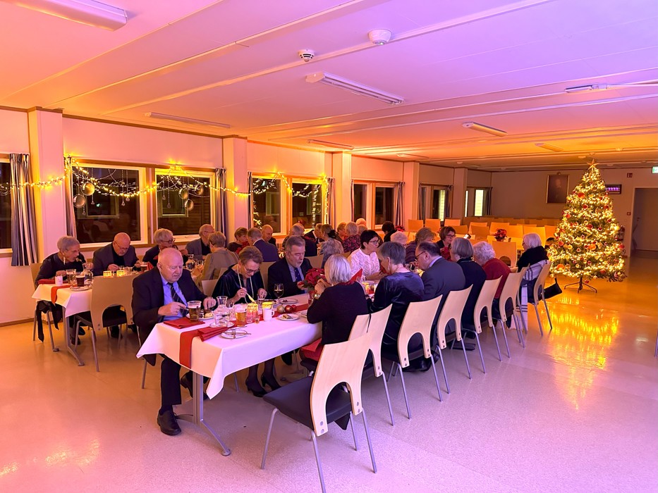 Da alle hadde fått det de trengte av ribbe, pinnekjøtt osv, gikk turen over til Fritidsmessas salonger. Messa er under ombygging og fornyelse dermed var det litt kaldt i lokalene. Alle hadde spist seg varme, så dette gikk bra, selv om enkelte måtte beholde ytterfrakken på.
