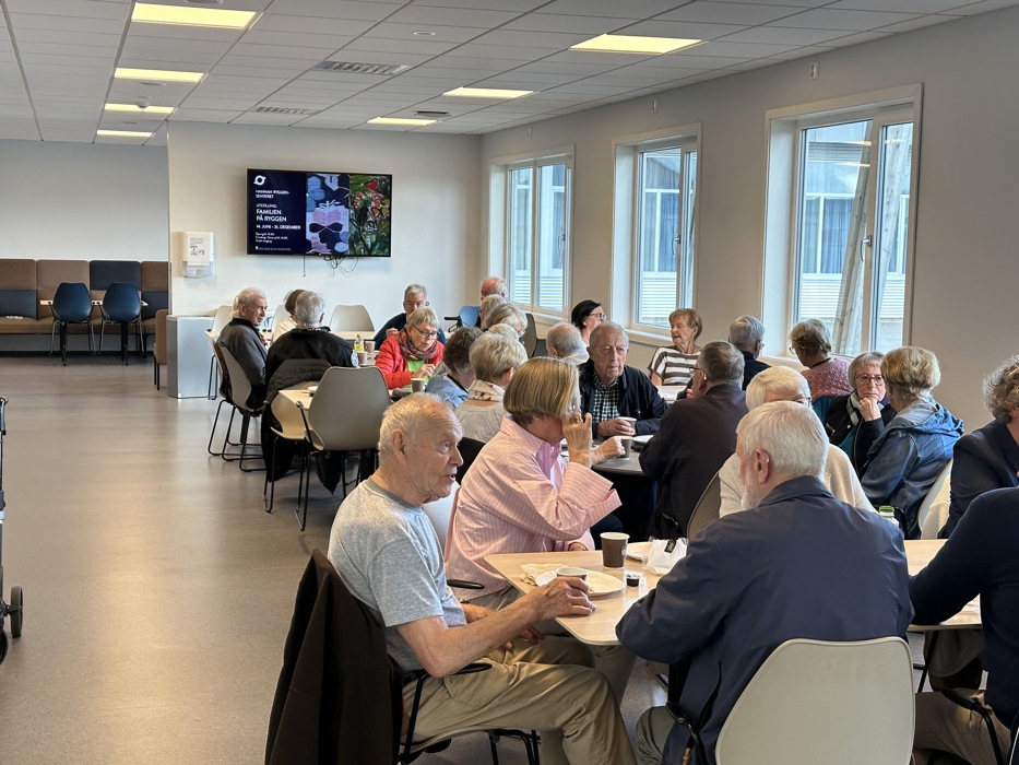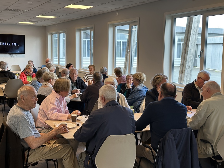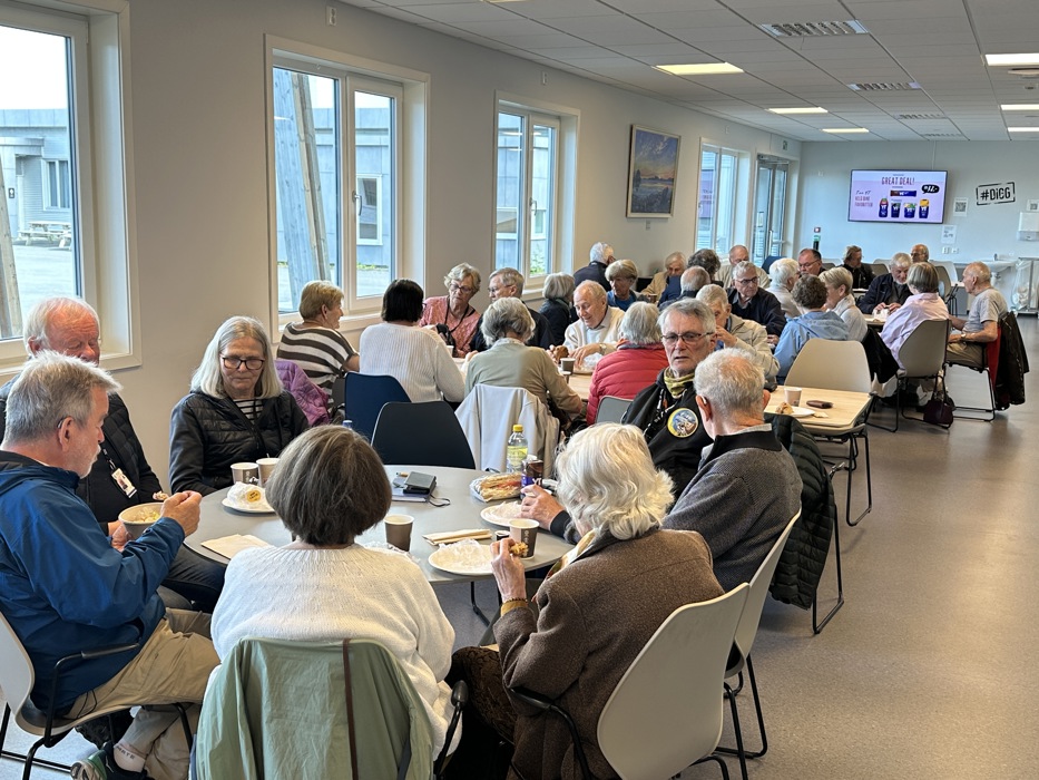 Etter briefingen var det som vanlig kaffe møte i kantina. Vi var så mange at vi nesten fylte opp lokalet.