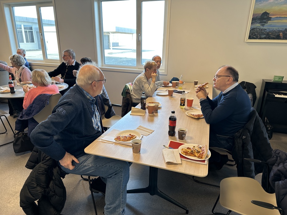 Da møte var avsluttet ble det pizza, kaffe og annet drikke i kantina. Personellet på kantina hadde bakt fortreffelig pizza. Jeg vet ikke om kantina driver "take away", med dersom dette er mulig er dette noe for enhver smak.